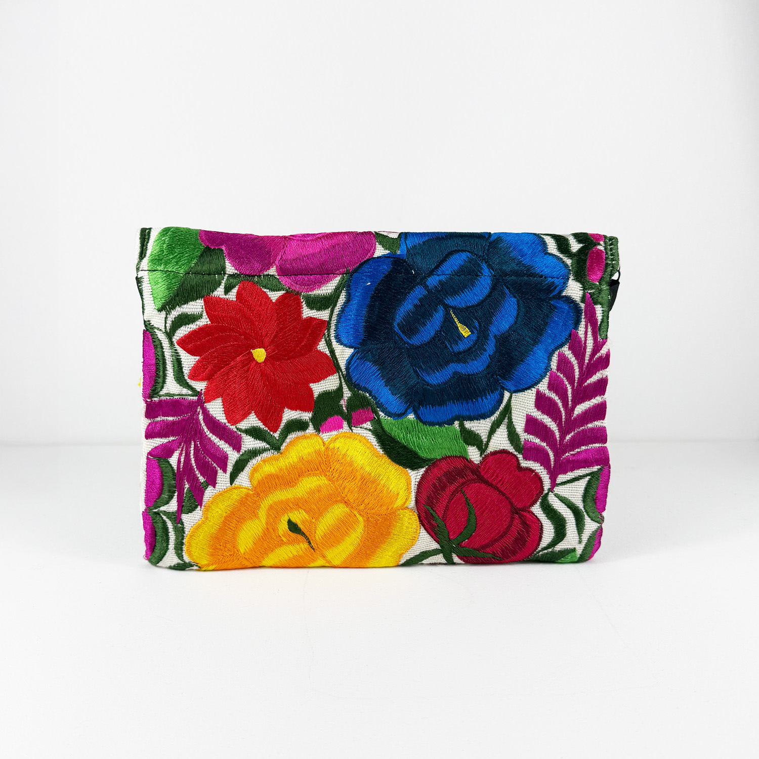 Kopertówkę stworzyli meksykańscy rzemieślnicy na południu Meksyku, inspirowani starożytnymi technikami. Nasi artyści użyli tradycyjnego sprzętu do jej wykonania, co zajęło wiele godzin pracy. Proces rozpoczyna się od tworzenia podstawy na krośnie pedałowym, znanym jako telar de pedal. Następnie kwiaty są ręcznie rysowane i haftowane na niezautomatyzowanej maszynie, której obsługę w 100% kontrolują rzemieślnicy.