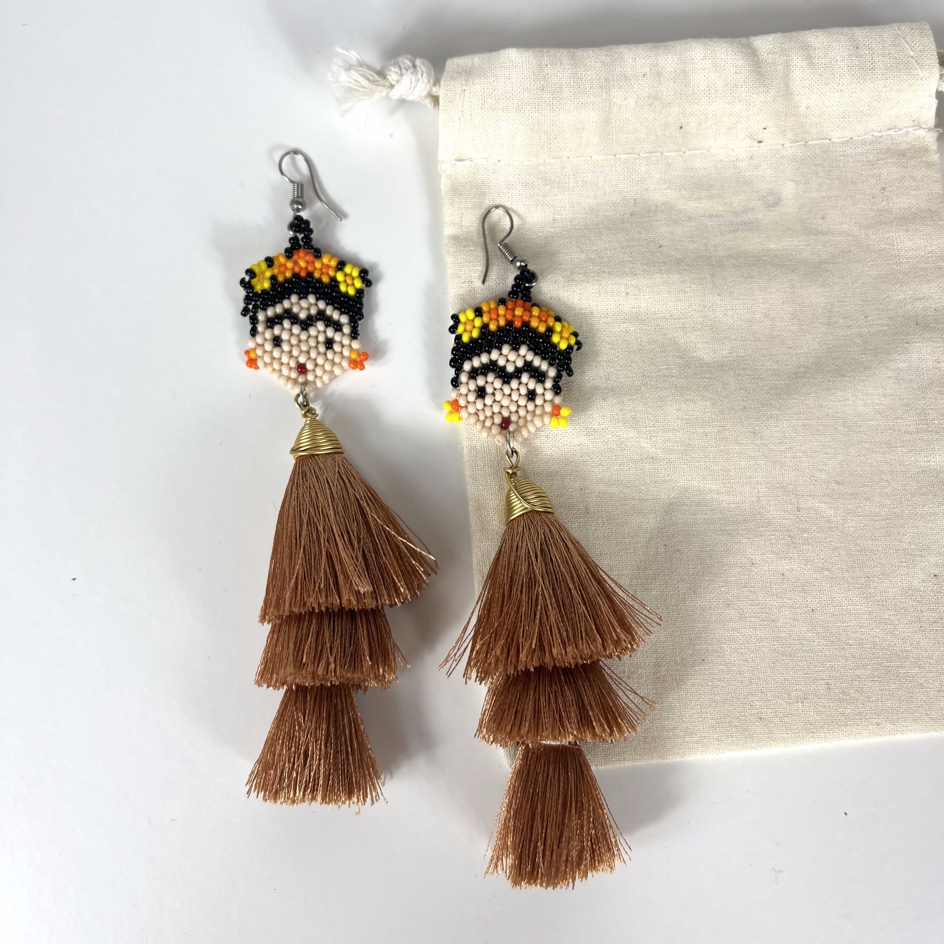 Jak Frida to tylko z Meksyku! Jedyne w swoim rodzaju kolczyki z Meksykańską malarką Fridą Kahlo. Od początku do końca ręcznie stworzone przez meksykańskich rękodzielników. Wykonane z drobnych koralików oraz długich chwostów. Te niepowtarzalne kolczyki idealnie dodadzą oryginalności Twojej stylizacji. Każda para jest inna – dostajesz jedyne w swoim rodzaju.