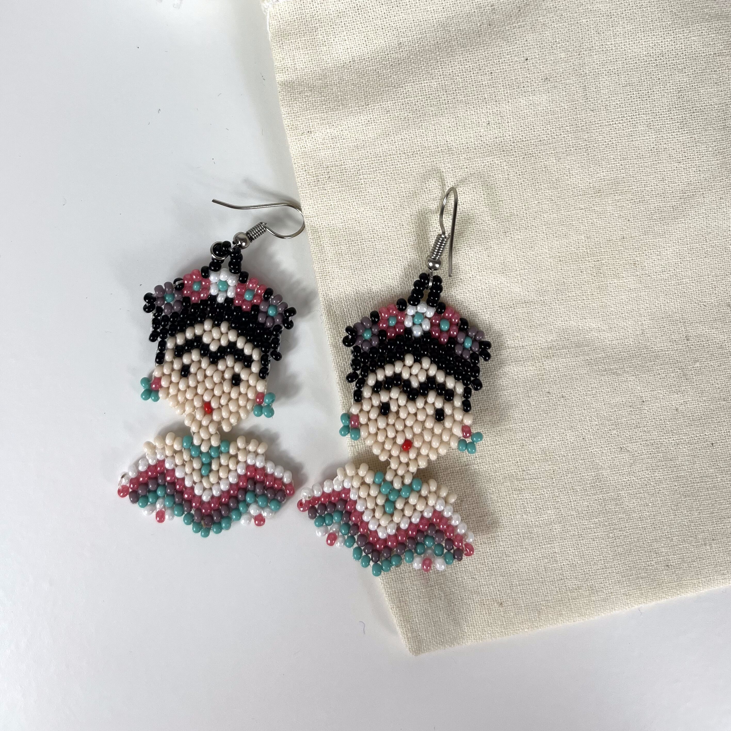 Jak Frida to tylko z Meksyku! Jedyne w swoim rodzaju kolczyki z Meksykańską malarką Fridą Kahlo. Od początku do końca ręcznie stworzone przez meksykańskich rękodzielników. Wykonane z drobnych koralików. Te niepowtarzalne kolczyki idealnie dodadzą oryginalności Twojej stylizacji. Każda para jest inna – dostajesz jedyne w swoim rodzaju.