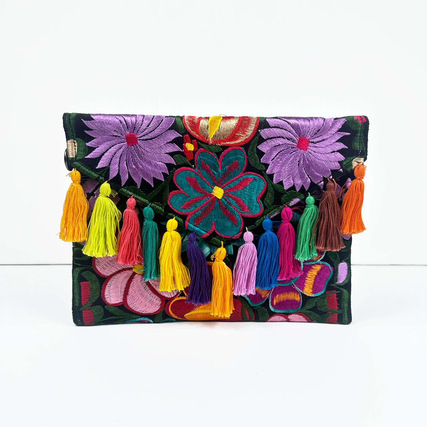 Mexico Black to wyjątkowa torebka handmade, stworzona ręcznie przez rzemieślników z południa Meksyku. Ta unikalna kopertówka łączy w sobie tradycję, sztukę i elegancję, a każdy egzemplarz jest jedyny w swoim rodzaju. Nie istnieją dwie identyczne sztuki – każdy haftowany wzór kwiatowy jest inny, co nadaje torebce niepowtarzalny charakter.
