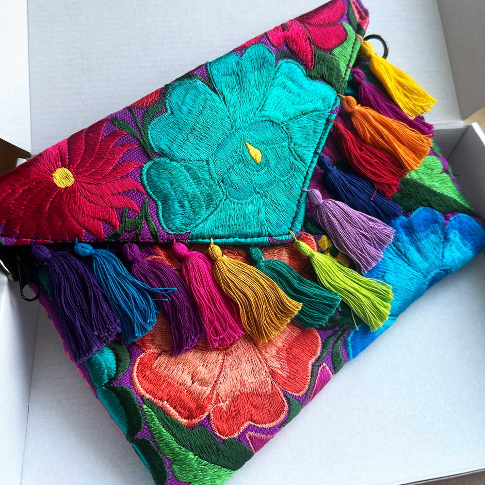 Ach, Frida! To nasza bestsellerowa kolorowa torebka handmade z Meksyku, która zachwyca od pierwszego spojrzenia. Ręcznie wykonana kopertówka Frida to hołd dla pasji, kobiecej siły i radości życia – jak mały kawałek Meksyku zamknięty w formie torebki. Pełna barw, energii i tradycyjnego rzemiosła, przenosi Cię w świat meksykańskiej sztuki,
