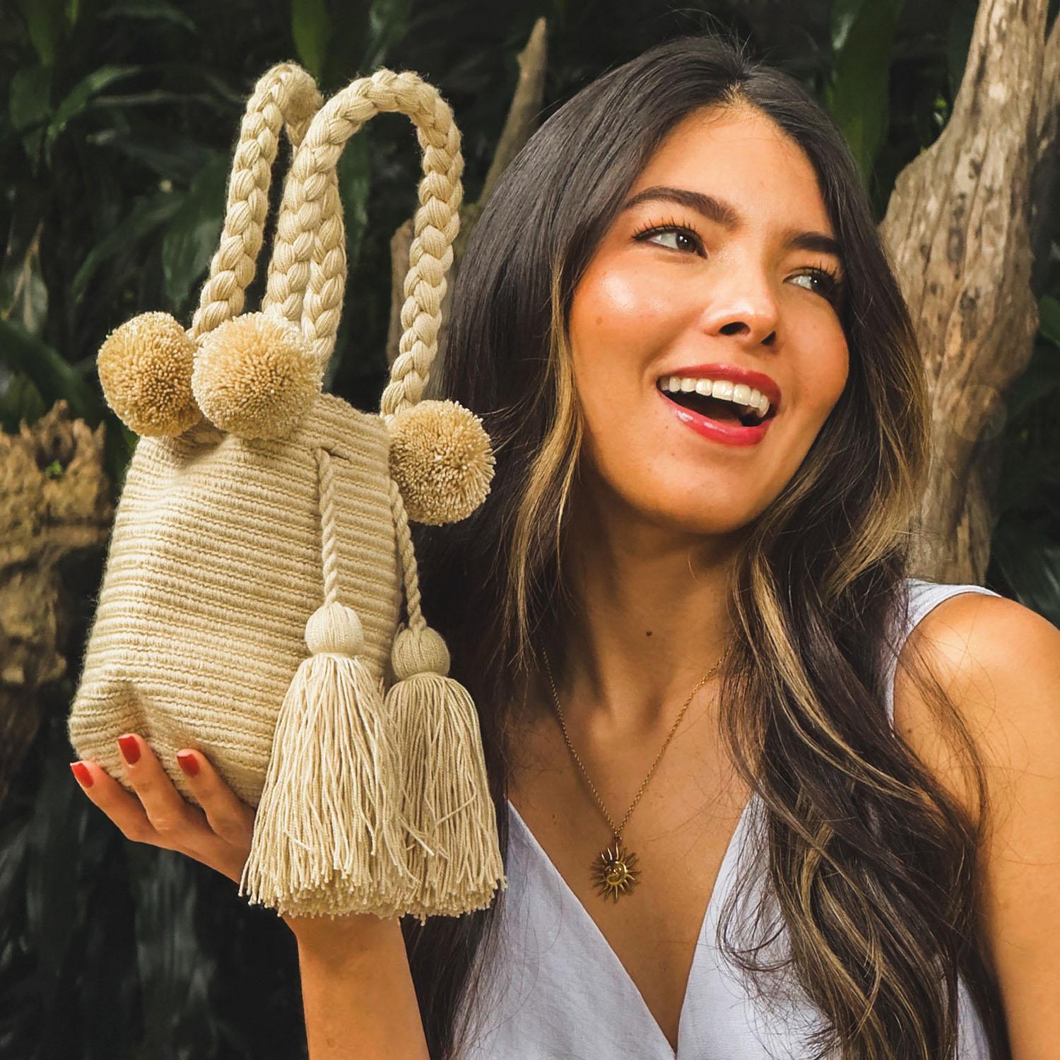 Poznaj najmniejszą torebkę z naszej kolekcji – Alme Mini. Torebki są ręcznie tworzone przez rzemieślniczki z plemienia Wayuu w Kolumbii. Powstają w pustynnym regionie La Guajira – w całości ręcznie, zgodnie z tradycyjnymi technikami przekazywanymi z pokolenia na pokolenie i stanowiącymi ważną część kulturowego dziedzictwa Wayuu.