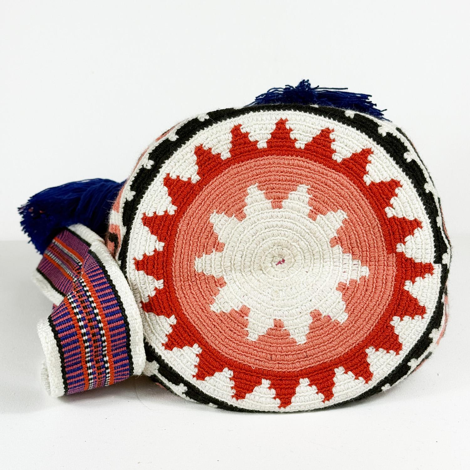 Proces tworzenia jednej torebki Wayuu trwa około 8–10 dni. Każdy egzemplarz jest szydełkowany przez bez pośpiechu i bez użycia maszyn. To czas poświęcony na precyzyjne splatanie nici, dbałość o detale i zachowanie tradycyjnych technik, które od pokoleń są częścią codziennego życia społeczności Wayuu. Dzięki praktycznemu, szerokiemu zamknięciu umożliwia wygodny dostęp do wnętrza i doskonale sprawdzi się zarówno na co dzień, jak i podczas wyjazdów czy spacerów.